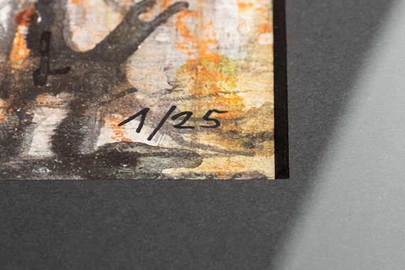 - La numerazione (1/25, 2/25, 3/25, …), una volta sul retro e una seconda direttamente davanti alla stampa.