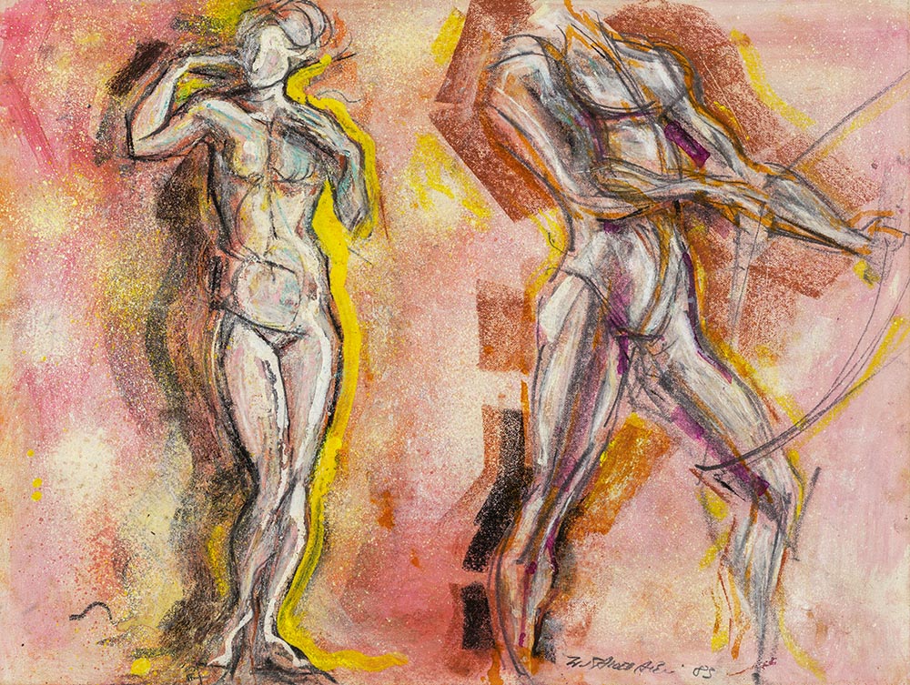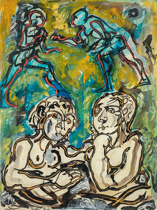 Zeichnungen aus dieser Schaffensperiode sind von den starken Linien der Anfangszeit des Malers gekennzeichnet. Figuren und Formen werden klar vom Hintergrund abgegrenzt und von kräftigen Strichen und schwungvollen Konturen belebt.